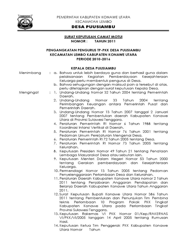 Sk pembentukan kelompok kerja operasional dan forum kelurahan siaga aktif margo husodo. Sk kode etik pegawai · sk majelis kode etik pegawai. Pkk sk up2k sk panitia lomba pkk surat keputusan tim penggerak pkk kecamatan . Bertempat di gedung runtuh kuala tungkal, kegiatan jambore dibuka oleh bupati tanjung jabung barat yang diwakili oleh wakil bupati tanjung . Bahwa untuk itu perlu ditetapkan dengan surat keputusan rektor.